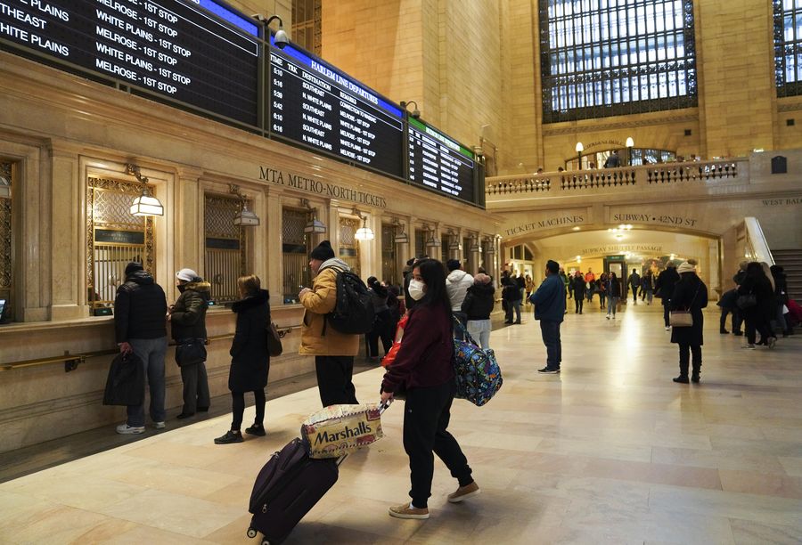 A passenger wearing facial mask waits to buy ticket at Grand Central Station in New York, the United States, Feb. 29, 2020. (Xinhua/Wang Ying)