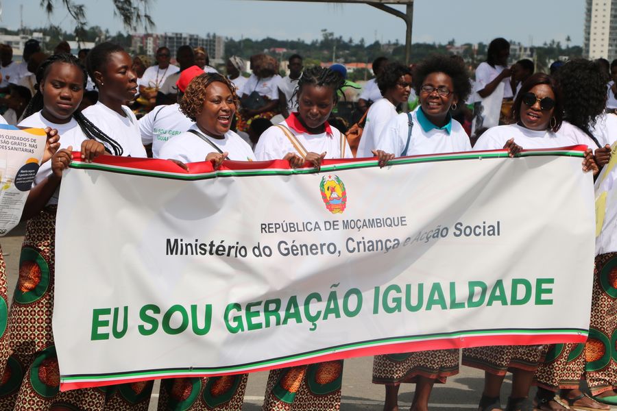 A group of women show a banner that reads "I am generation equality", which is the motto of the Women's Month, during its launching ceremony in Maputo, Mozambique, March 2, 2020. (Photo by Israel Zefanias/Xinhua)