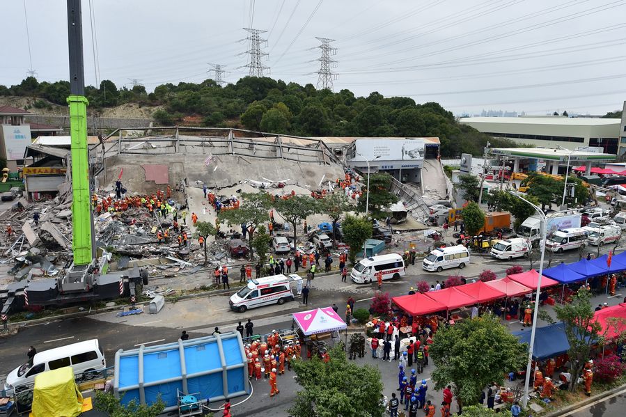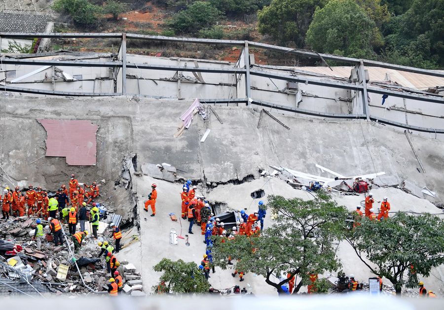 More than 1,000 fire fighters have rushed to help with rescue work after a hotel used for coronavirus quarantine collapsed Saturday evening in east China's Fujian Province, according to the Ministry of Emergency Management (MEM).