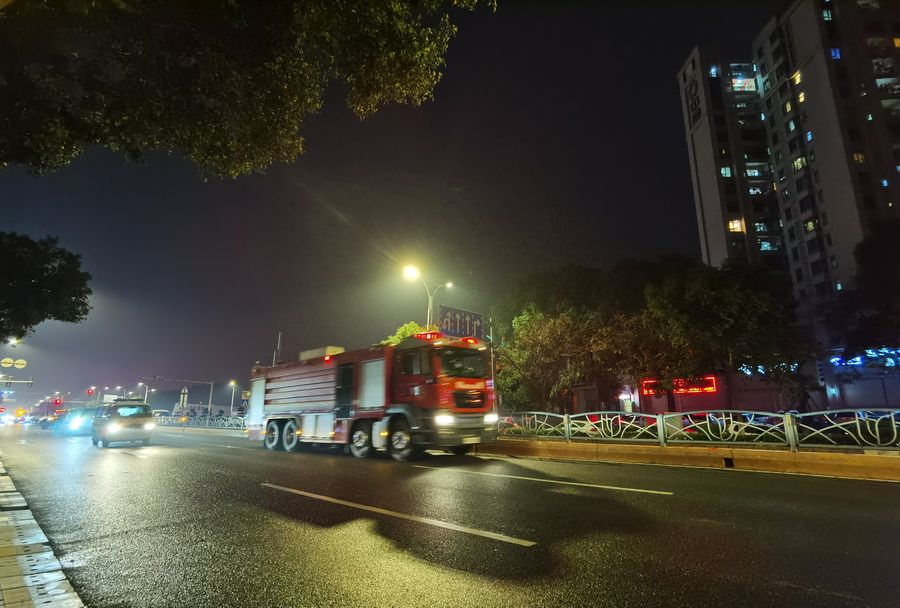 A rescue vehicle heads to the accident site in Quanzhou, east China's Fujian Province, March 7, 2020. (Str/Xinhua)