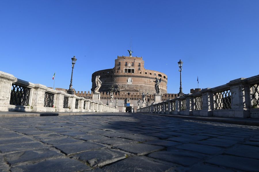 Photo taken on March 10, 2020 shows the Ponte Sant'Angelo in Rome, Italy.(Photo by Alberto Lingria/Xinhua)