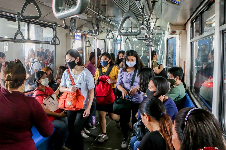 People take the Metro Rail Transit-3 (MRT-3) in Quezon City, the Philippines, on March 10, 2020. (Xinhua/Rouelle Umali)