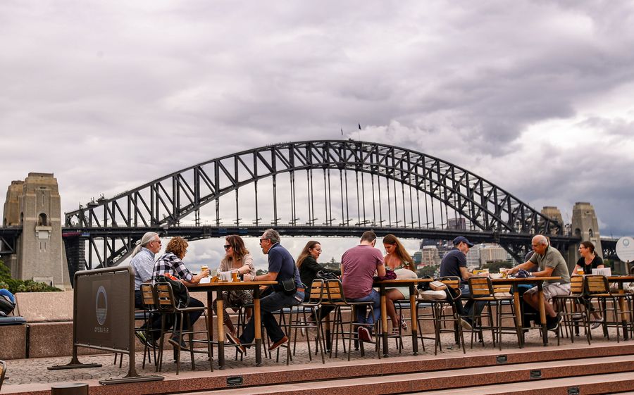 Tourists enjoy their leisure time near the Sydney Harbor Bridge in Sydney, Australia, March 10, 2020. (Xinhua/Bai Xuefei)