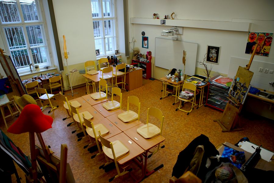 An empty art classroom is seen at a primary school on Vodickova street in Prague, the Czech Republic, March 11, 2020. (Photo by Dana Kesnerova/Xinhua)