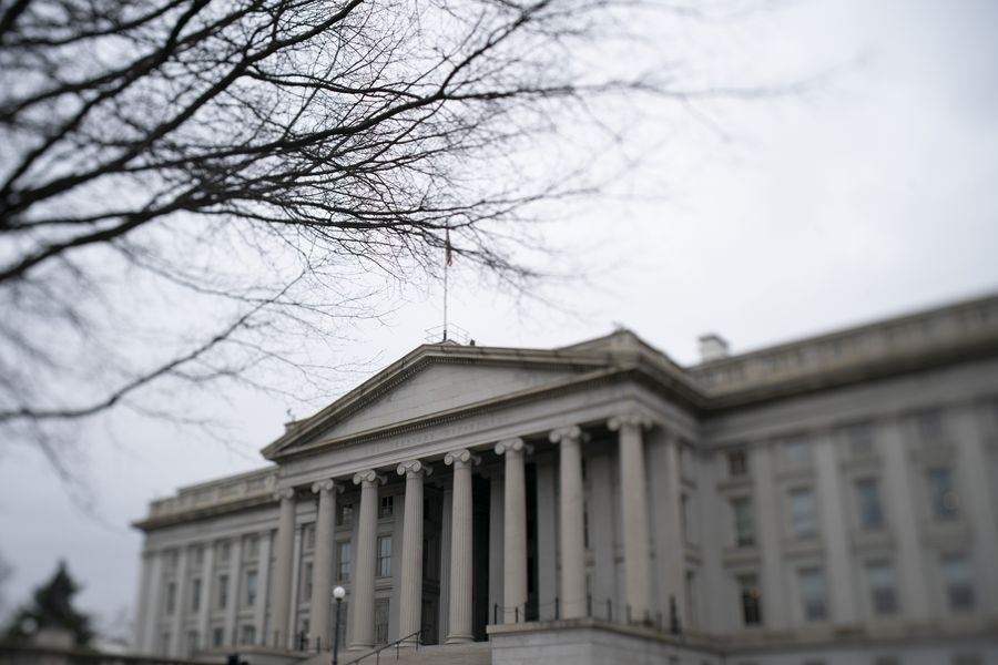 Photo taken on March 11, 2020 with a tilt-shift lens shows the U.S. Treasury Department in Washington D.C., the United States. (Xinhua/Liu Jie)