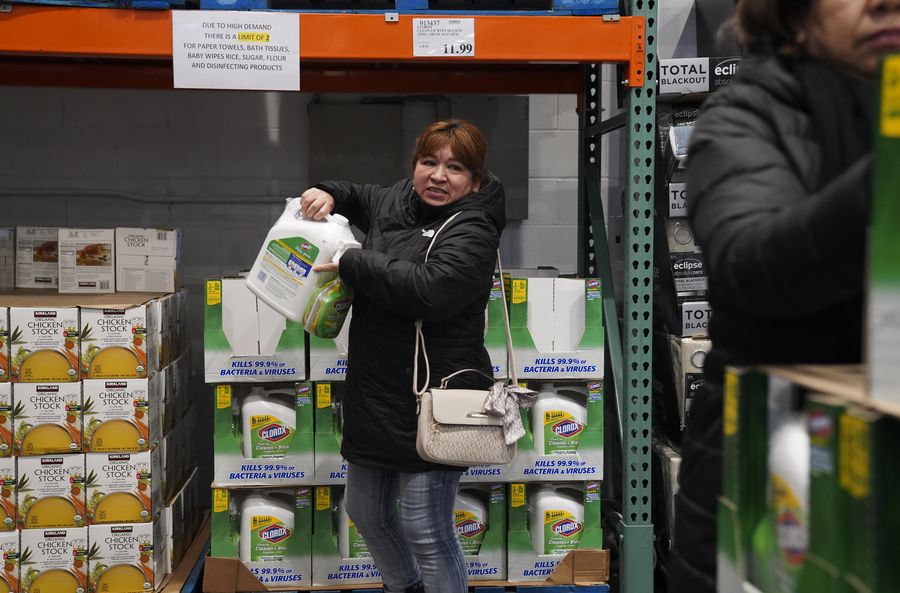 People shop sanitary products at a Costco supermarket in New York, the United States, March 7, 2020. (Xinhua/Wang Ying)