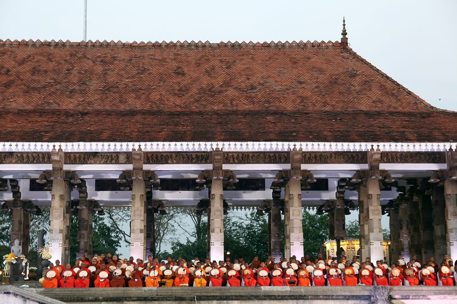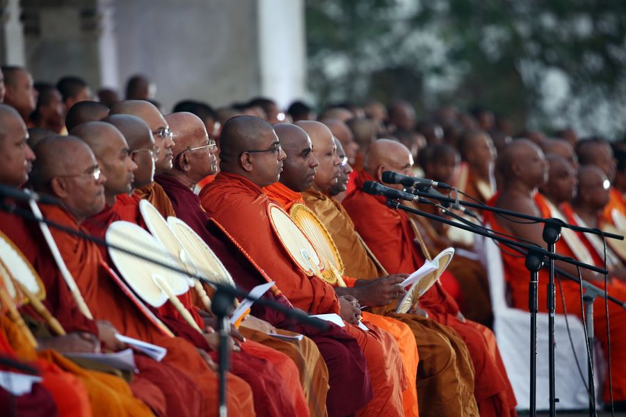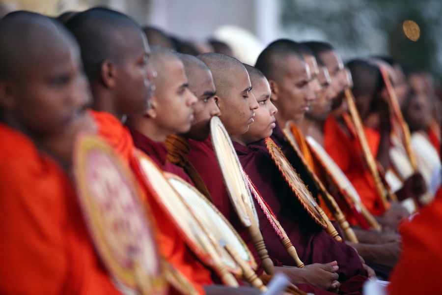 Buddhist monks attend mass religious prayers at the Independence Square in Colombo, Sri Lanka, March 14, 2020. (Photo by Ajith Perera/Xinhua)