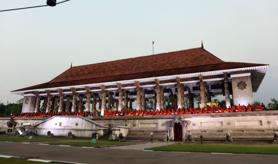 Buddhist monks attend mass religious prayers at the Independence Square in Colombo, Sri Lanka, March 14, 2020. (Photo by Ajith Perera/Xinhua) ■