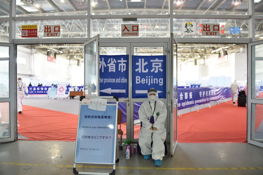 Photo shows a view at the New China International Exhibition Center in Beijing, capital of China, March 14, 2020. Beijing has converted the New China International Exhibition Center into a transit center for international inbound passengers.
