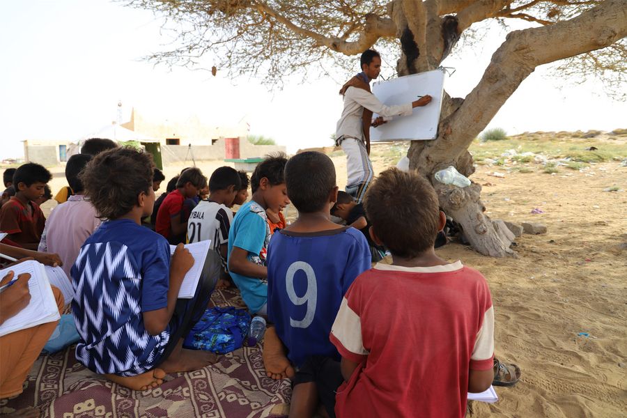 Students have a class under a tree at a school in Midi district of Hajjah province, Yemen, March 14, 2020. The war in Yemen has forced millions of children out of school. (Photo by Mohammed Alwafi/Xinhua)
