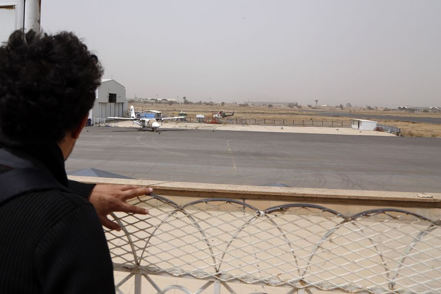 A man looks at a plane parked at the Sanaa International Airport after it was closed over COVID-19 concerns, in Sanaa, Yemen, March 15, 2020. Yemen's Houthi militia authorities on Saturday announced the suspension of international flights for two weeks over concerns about COVID-19. (Photo by Mohammed Mohammed/Xinhua)