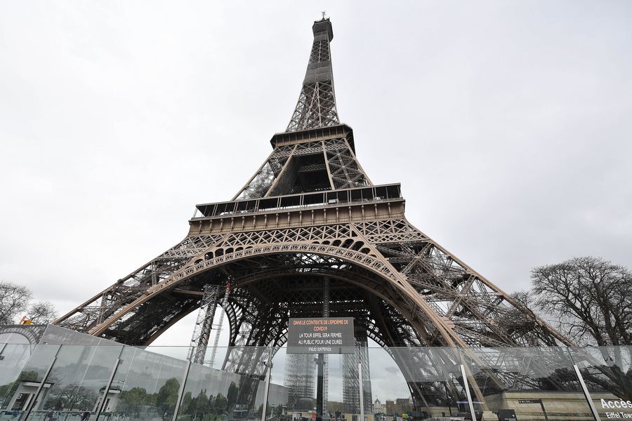 A notice of the closure of the Eiffel Tower, as part of measures to contain the spread of COVID-19, is seen in Paris, France, on March 14, 2020.(Photo by Jack Chan/Xinhua)