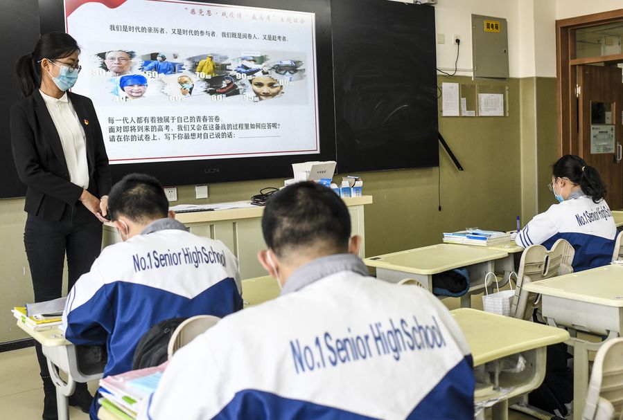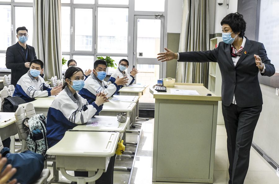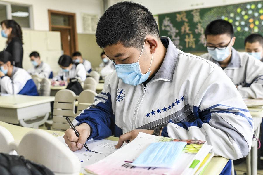 Each class is limited to 30 students, seating is staggered and temperatures are taken three times a day. All the classrooms, canteens and dormitories are disinfected regularly, while closed-off campus management has been adopted to reduce imported infection risks, according to Tian Yun, head of the school's educational administration office.