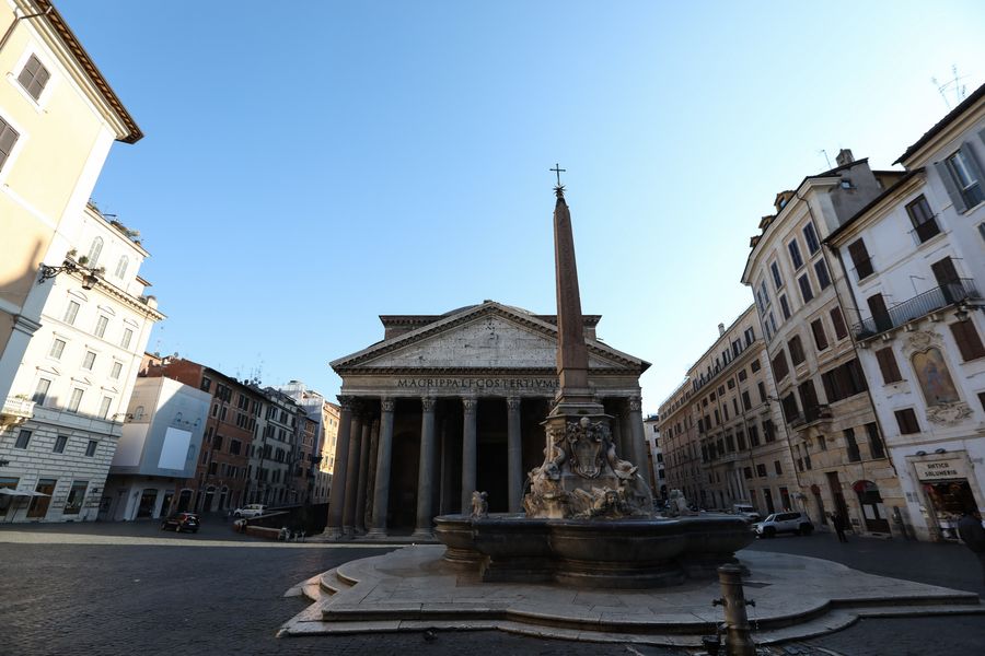 No tourists visit the Pantheon in Rome, Italy, March 16, 2020. (Xinhua/Cheng Tingting)■