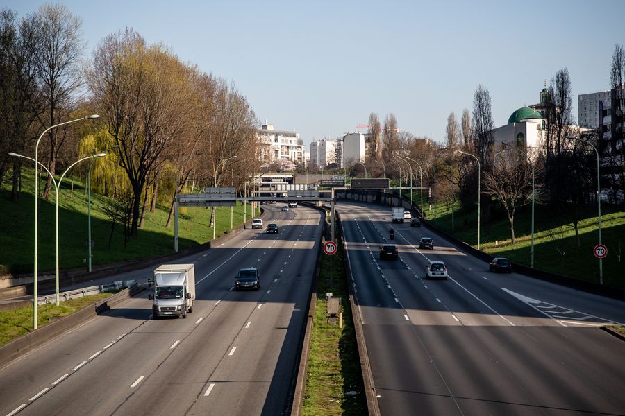 Vehicles are seen on the Paris ring-road in Paris, France, March 19, 2020. (Photo by Aurelien Morissard/Xinhua)