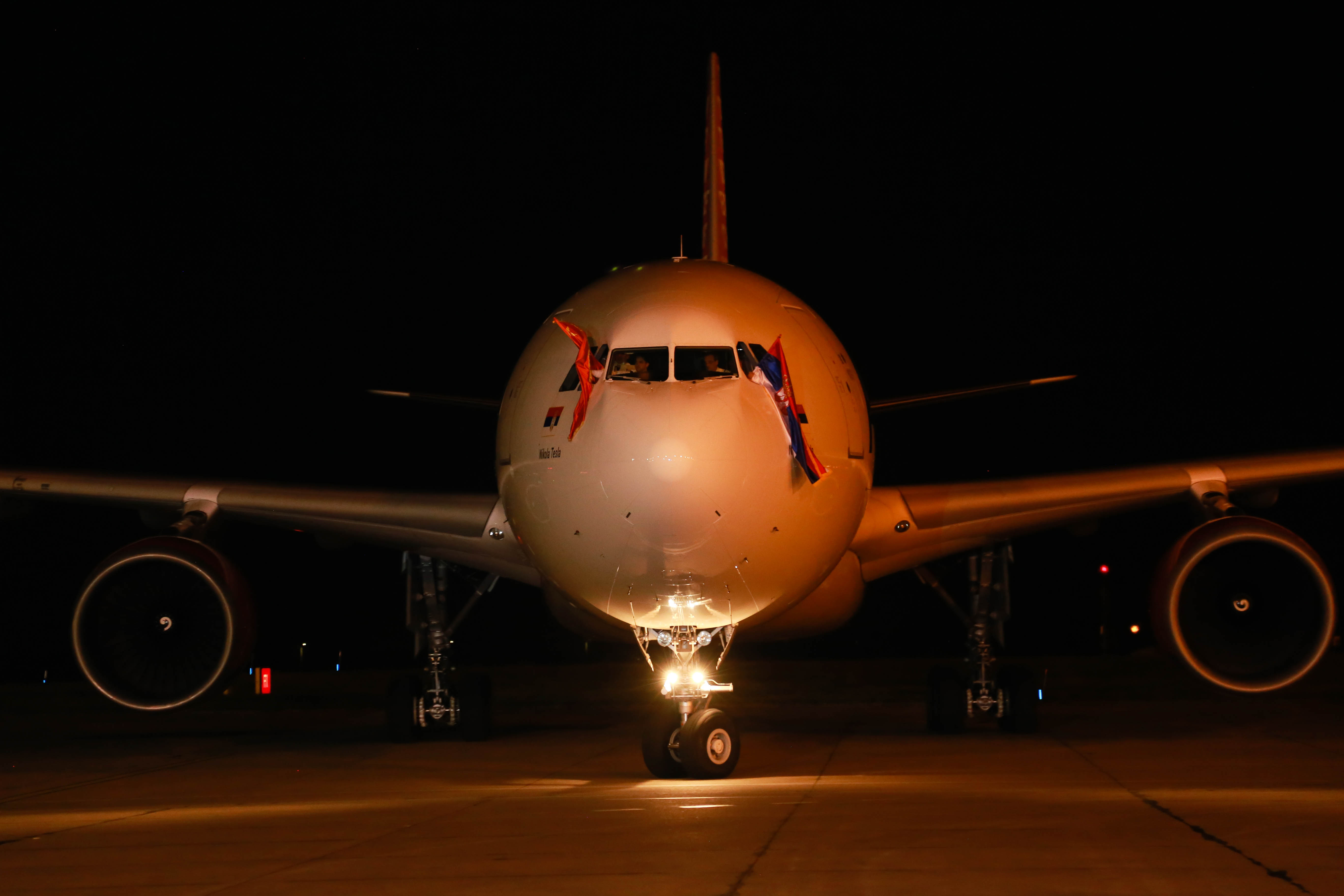 An airplane carrying a Chinese medical team arrives in Belgrade, Serbia, March 21, 2020. (Xinhua/Shi Zhongyu)