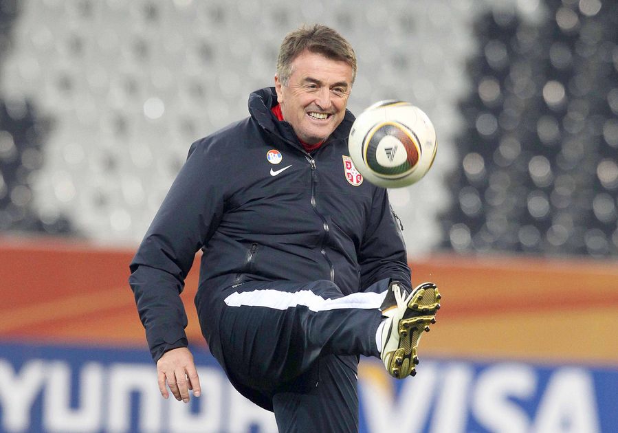 Serbia's national soccer team head coach Radomir Antic performs during his team's training session at the Mbombela Stadium in Nelspruit, South Africa, 22 June 2010. Serbia will face Australia in the FIFA 2010 World Cup group D soccer match on June 23.