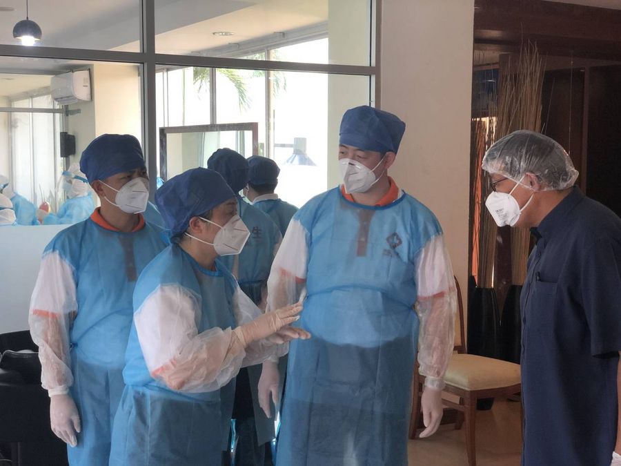 "Starting from the entrance to the hospital, we have gone through the entire treatment process twice, including admission to hospital, triage and sample testing," said Ai Xiang, leader of Chinese medical team in Cambodia.