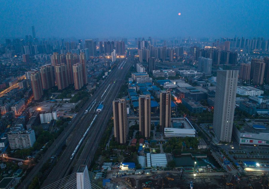 A high-speed train driving to the Hankou Railway Station to pick up passengers in Wuhan, capital of central China's Hubei Province, April 8, 2020. (Xinhua/Xiao Yijiu)