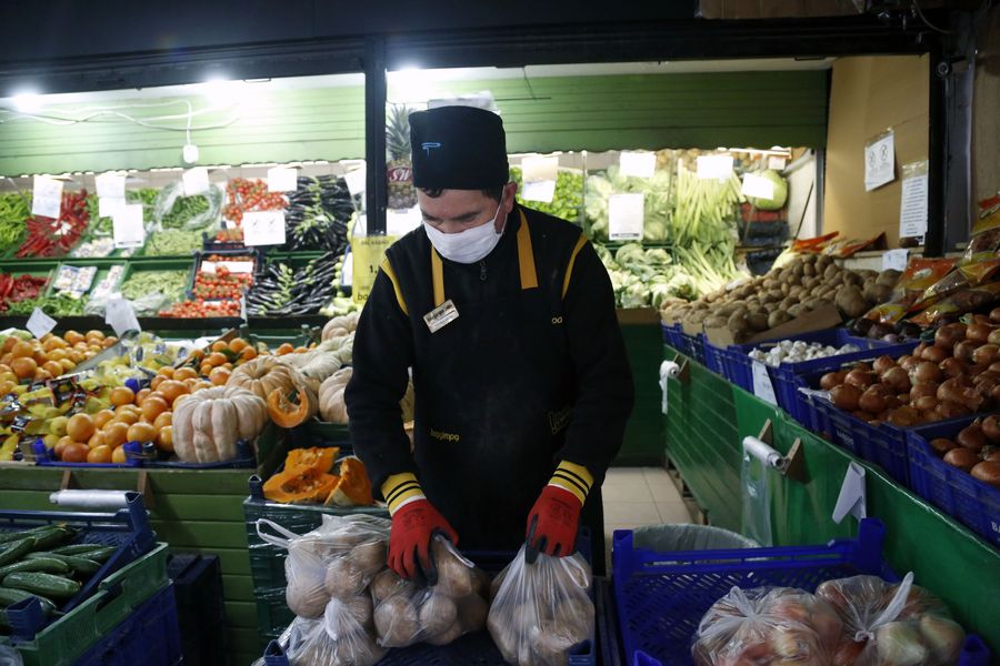 A man works at a supermarket in Ankara, Turkey, March 30, 2020. (Photo by Mustafa Kaya/Xinhua)