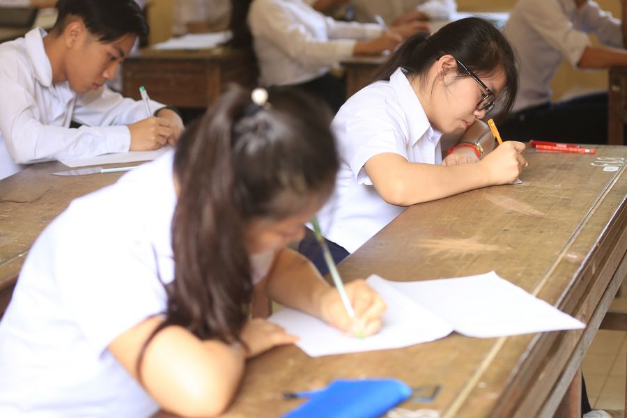 Students attend a national high school graduation exam in Phnom Penh, Cambodia, on Aug. 20, 2018. (Xinhua/Phearum)