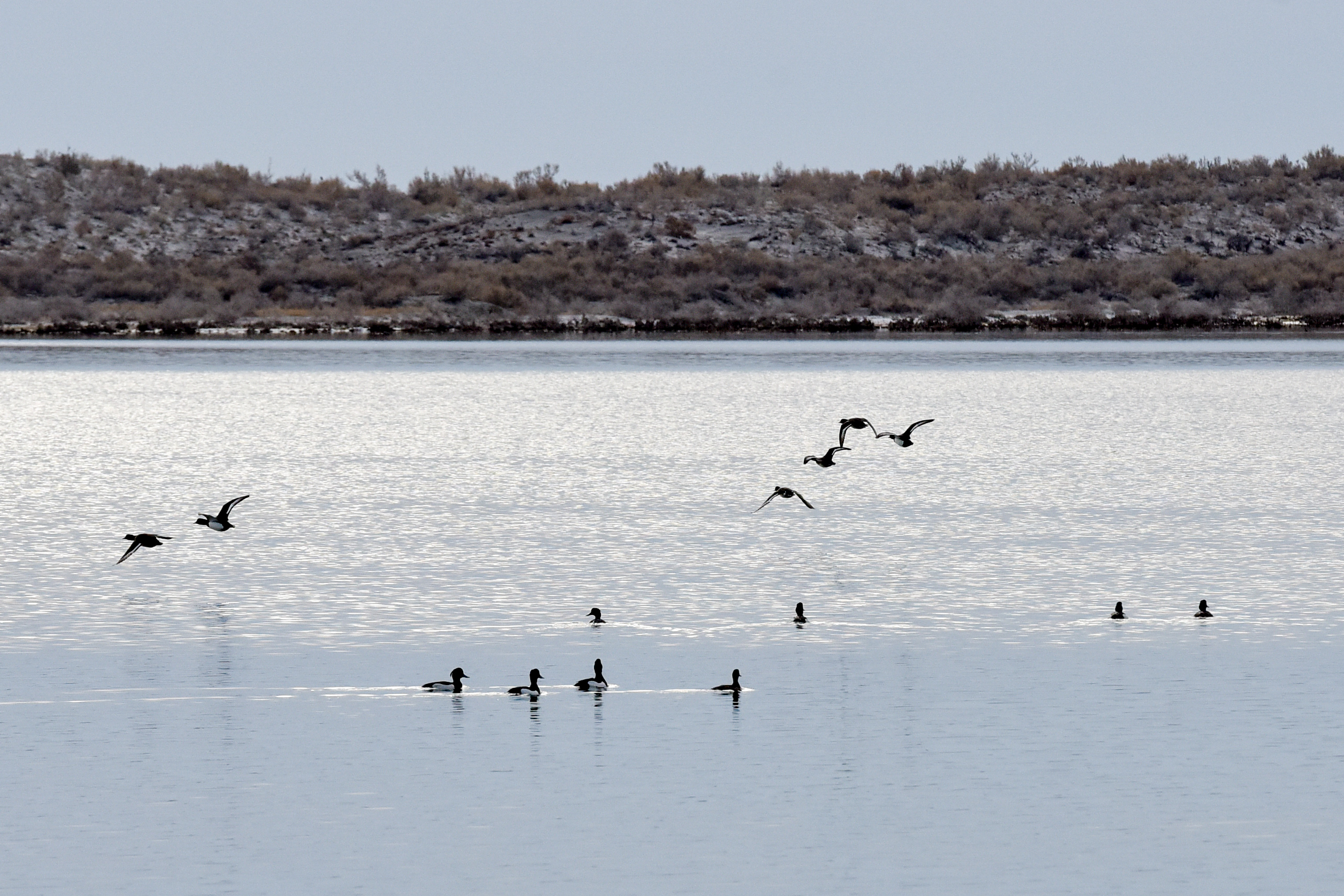 Birds fly at Ulungur Lake National Wetland Park, April 17, 2020. (Xinhua/Ding Lei)
