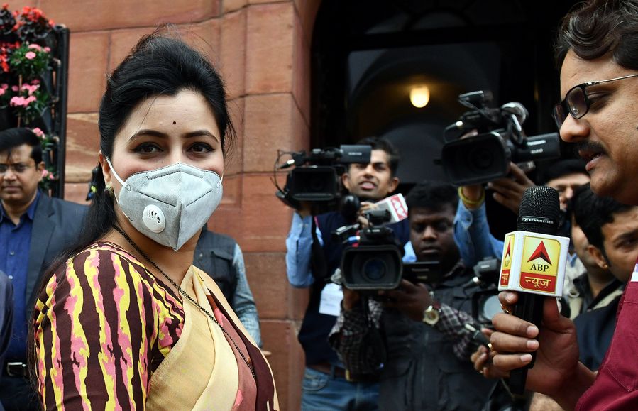 An Indian parliamentarian wears a mask due to ongoing threat of COVID-19 during the budget session of the Parliament in New Delhi, India, March 5, 2020. (Photo by Partha Sarkar/Xinhua)