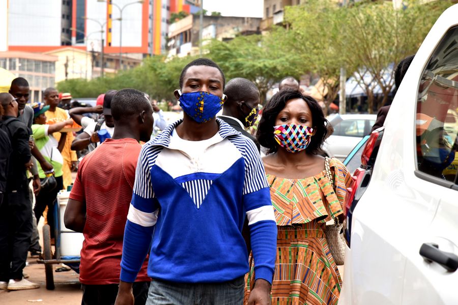 People wear cloth face masks to protect themselves against the COVID-19 in Yaounde, Cameroon on April 9, 2020. (Photo by Jean Pierre Kepseu/Xinhua)