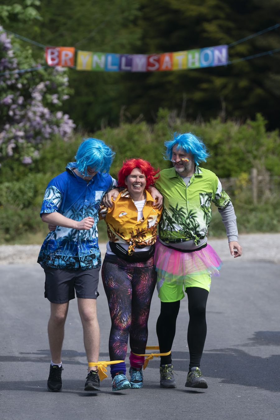 People take part in a marathon in an effort to raise funds for PPE (Personal Protective Equipment) for medical workers in local hospitals and nursing homes, in Prestatyn, north Wales, Britain, May 1, 2020. (Photo by Jon Super/Xinhua)