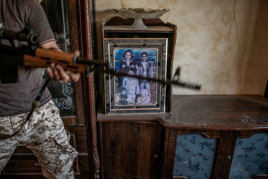 A family photo is seen in an abandoned house during clashes between fighters of the UN-backed Government of National Accord (GNA) and Libyan National Army (LNA) troops at Salah Al-Din frontline in Tripoli, Libya, May 2, 2020. (Photo by Amru Salahuddien/Xinhua)