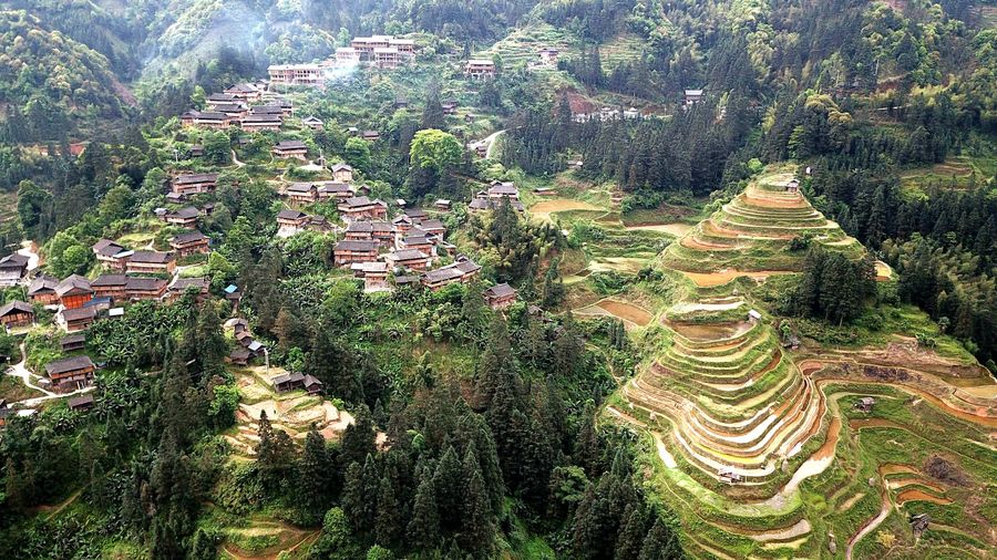 Aerial photo taken on May 2, 2020 shows terraced fields in Rongjiang County, southwest China's Guizhou Province. (Photo by Wang Bingzhen/Xinhua)
