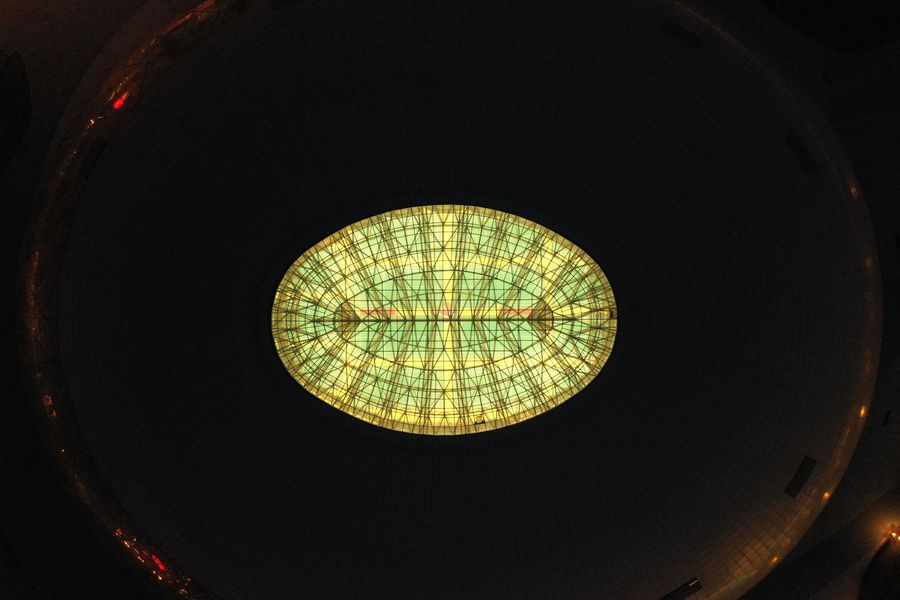 Aerial photo taken on May 2, 2020 shows the night scene of Hinggan League Gymnasium in Ulanhot City, north China's Inner Mongolia Autonomous Region. (Xinhua/Xu Qin)■