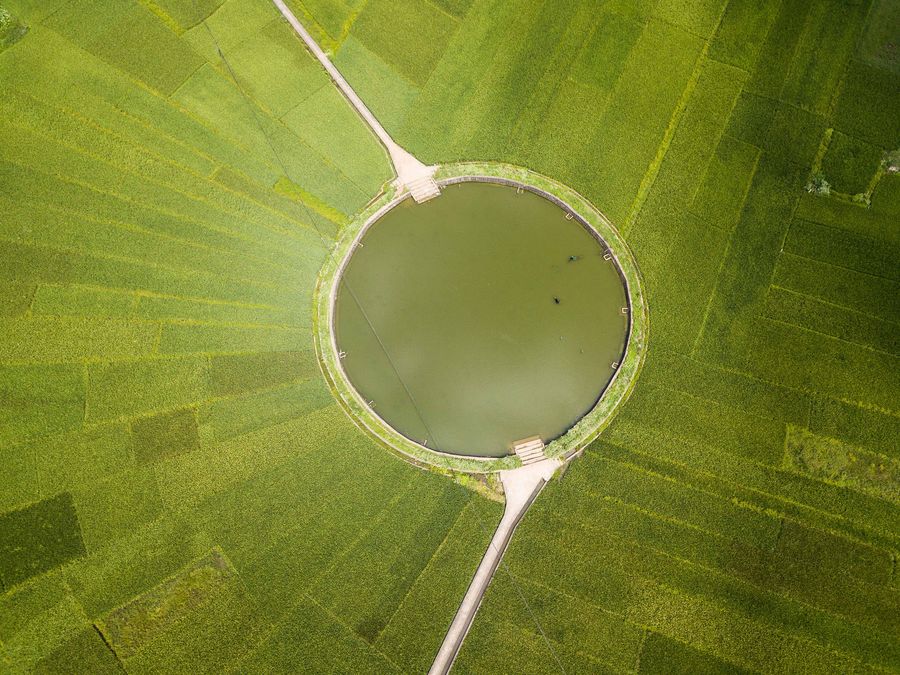 Aerial photo taken on May 2, 2020 shows rice fields in Wenyu Village of Xiuying District in Haikou, south China's Hainan Province. (Xinhua/Pu Xiaoxu)