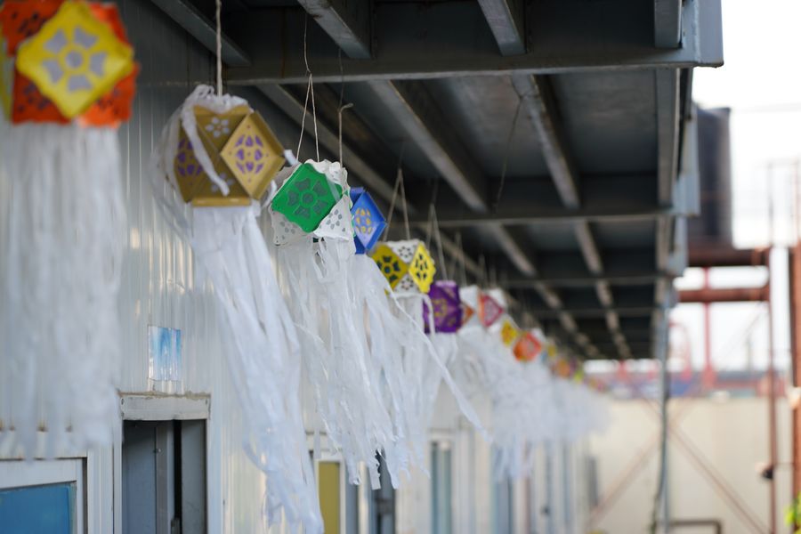 COLOMBO, May 8 (Xinhua) -- Local employees' living quarters in Sri Lanka's Port City Colombo were decorated with lanterns on Thursday to celebrate Vesak Day.
