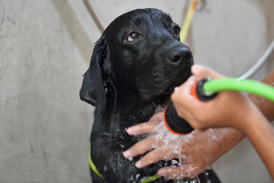 A pet groomer gives a dog a shower in Bangkok, Thailand, May 8, 2020.(Xinhua/Rachen Sageamsak)
