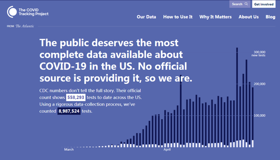 As for coronavirus testing, which is essential for states to make decisions on lifting stay-at-home orders and reopening businesses, media outlets are relying on the data provided by the COVID Tracking Project, a volunteer organization launched by The Atlantic.