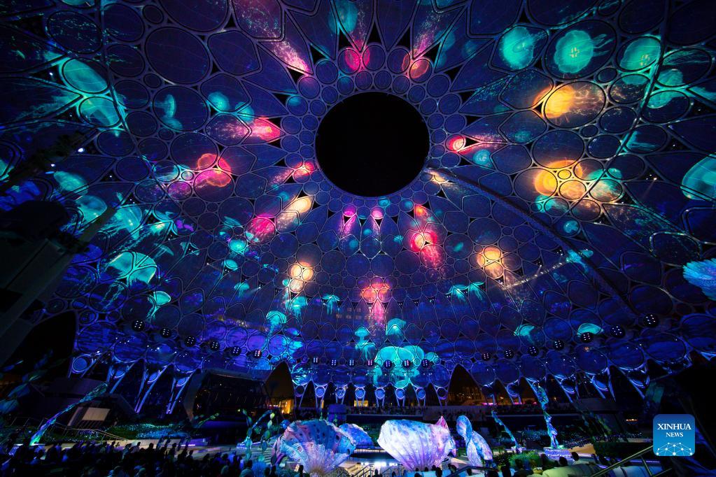 Photo taken on Sept. 30, 2021 shows the opening ceremony of the Expo 2020 Dubai in Dubai, the United Arab Emirates. Postponed due to the COVID-19 pandemic, the Expo 2020 Dubai will be held from Oct. 1, 2021 to March 31, 2022. (Xinhua)