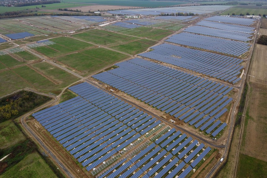 Photo taken on Oct. 30, 2020 shows the Kaposvar 100MW Photovoltaic Power Plant under construction in Kaposvar, Hungary. (Photo by Attila Volgyi/Xinhua)