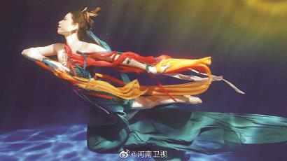 河南卫视的特别节目《端午奇妙游》火爆全网,演绎水下飞天的舞蹈《祈》仿佛再现建安才子曹植名篇《洛神赋》的景象。