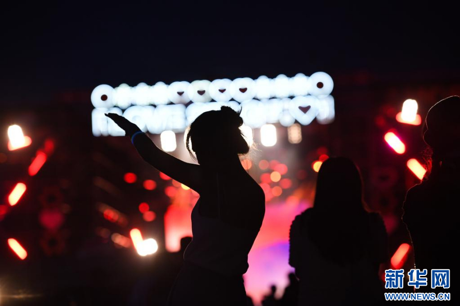 7月17日,在辽宁阜新百年国际赛道城,观众在阜新草莓音乐节现场随着音乐跳舞。 当日,2021阜新草莓音乐节在辽宁阜新的百年国际赛道城开幕,本次音乐节将持续至7月18日。 新华社记者 蔡湘鑫 摄