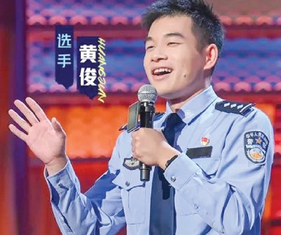比如,连上14个热搜的上海市公安局黄浦分局交警支队黄俊,得到全场领笑员拍灯支持与演员观众的起立鼓掌。黄警官的“包袱”来自工作日常——被小学生问到无奈选择“报警”、开发出“代驾”的“谐音梗”、用地道英语应对佯装听不懂中文的外国游客……观众们被逗得前仰后合,笑声中既是对一线基层奋斗者专业能力的信任认可,也透着对城市治理背后软实力的安全感。