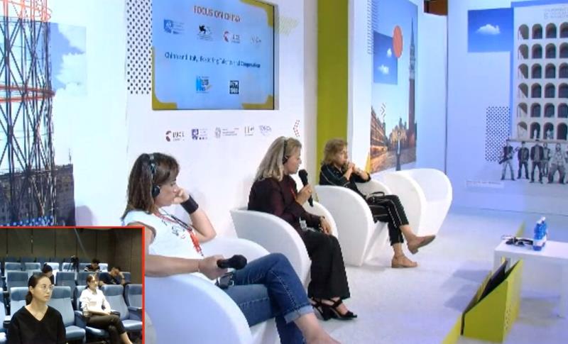 9月5日,中意双方多位嘉宾在本届威尼斯电影节“聚焦中国”活动上共同聚焦青年影视人才的培养,深入探讨疫情背景下的国际合作。(图为视频连线截图)