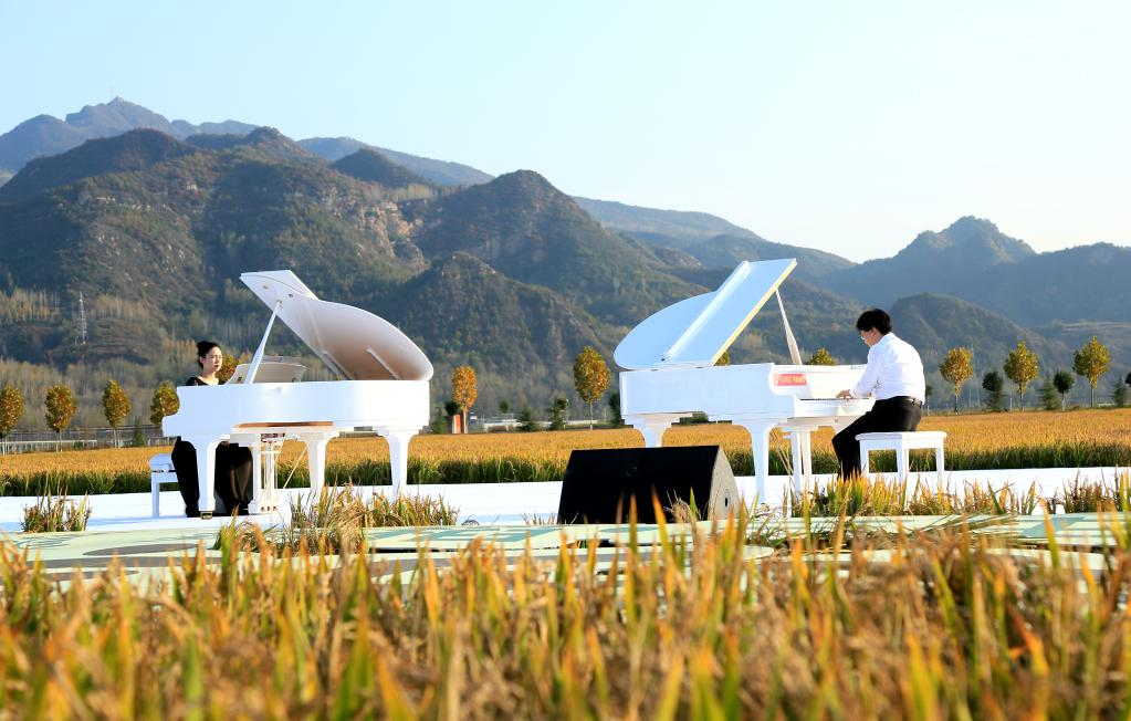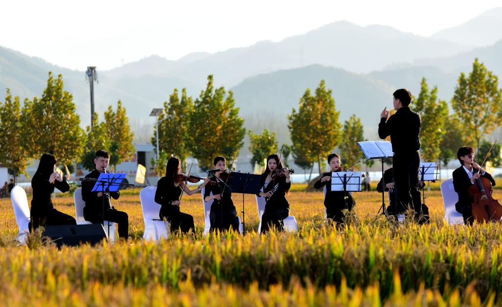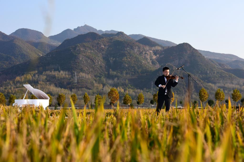 10月30日,音乐人在汝阳三屯稻田音乐节上演奏。 当日,河南省汝阳县三屯镇举行稻田音乐节,为当地村民带来一场别具一格的视听盛宴。 新华社记者 朱祥 摄pagebreak