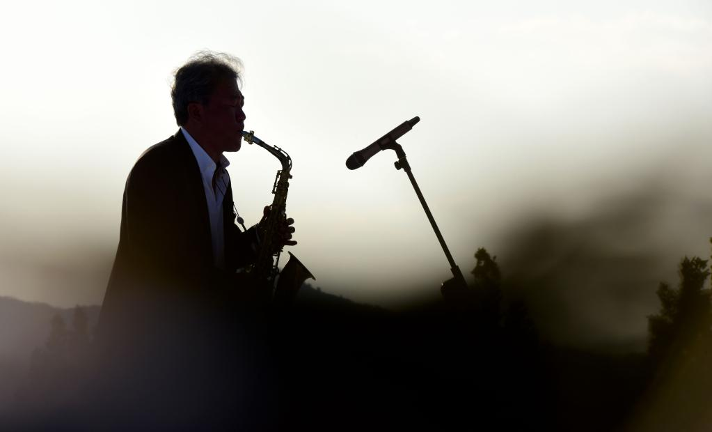 10月30日,音乐人在汝阳三屯稻田音乐节上演奏。 当日,河南省汝阳县三屯镇举行稻田音乐节,为当地村民带来一场别具一格的视听盛宴。 新华社记者 朱祥 摄