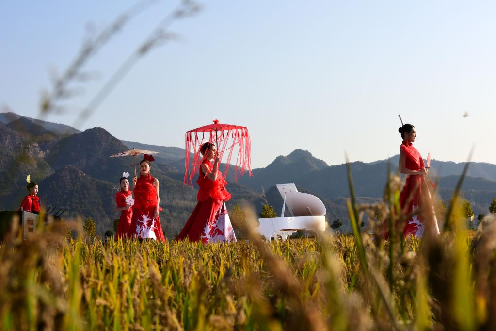 10月30日,演员在汝阳三屯稻田音乐节上表演。 当日,河南省汝阳县三屯镇举行稻田音乐节,为当地村民带来一场别具一格的视听盛宴。 新华社记者 朱祥 摄pagebreak