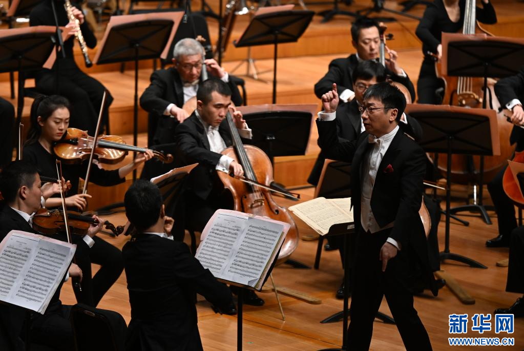 12月12日,指挥李心草(前右)在音乐会上指挥。新华社记者 金良快 摄