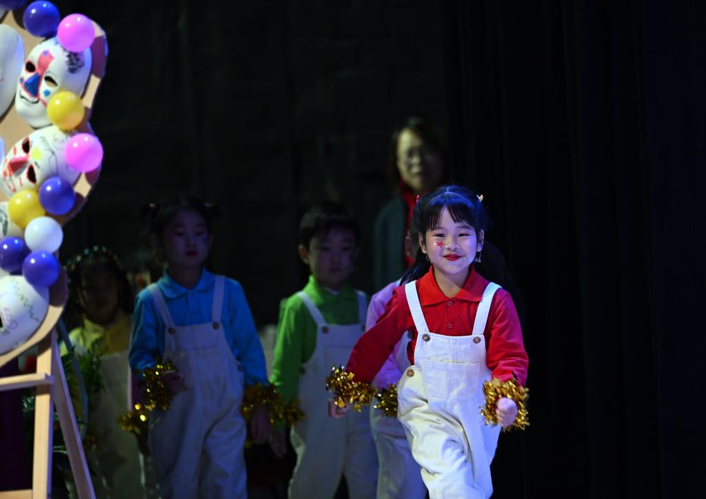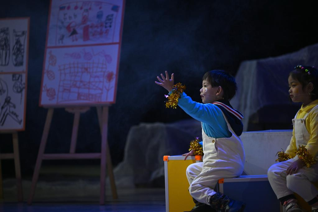 1月16日,孩子们登台表演。当日,北京儿童艺术剧院语言与表达班在北京举行汇报演出。孩子们通过戏剧课堂的启发,围绕“幸福是什么”这一主题,以原创诗歌的形式开展表演。新华社记者金良快摄