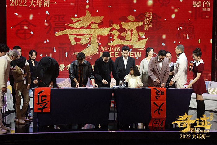 1月22日,由文牧野执导、宁浩监制,易烊千玺领衔主演的电影《奇迹·笨小孩》线上举办“2022好景常在——给每个努力的你”迎春年会,与全国150多家媒体和数百万观众云端共聚,同贺新春,直播点赞破2亿。活动现场,导演文牧野与易烊千玺分别以“幕后股东”和“厂长景浩”的身份,为“好景电子元件厂”的员工与伙伴颁发年度优秀奖,并邀请为影片原创音乐/作曲的“音乐合伙人”黄超、实力唱将周深、周笔畅齐聚年会KTV,首演“新愿曲”《回到你身边》、“兴工曲”《向前跑》两首为影片量身定制的全新作品,用好音乐助力“奇迹”故事,寄语新春,并透露后续还将有更多惊喜OST等待被揭晓。