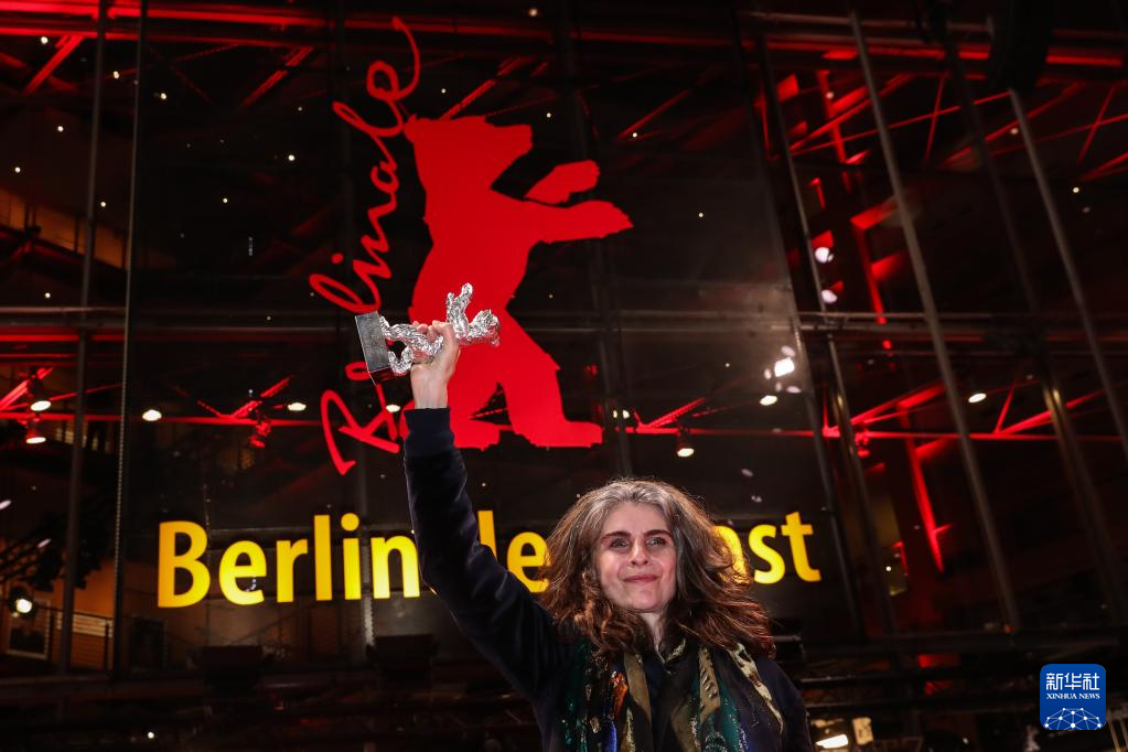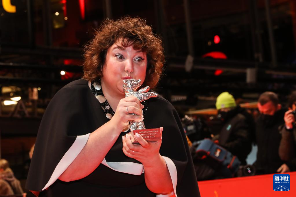 2月16日,在德国柏林,影片《阿尔卡拉斯》的导演卡拉·西蒙在颁奖仪式后亮相红毯。该影片获得最佳影片金熊奖。新华社记者 单宇琦 摄pagebreak