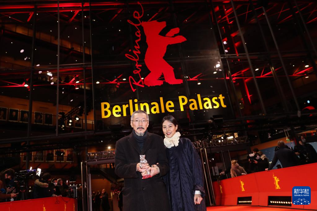 2月16日,在德国柏林,影片《小说家的电影》导演兼编剧洪尚秀(左)与演员金敏喜在颁奖仪式后亮相红毯。该影片获得评审团大奖银熊奖。新华社记者 单宇琦 摄pagebreak
